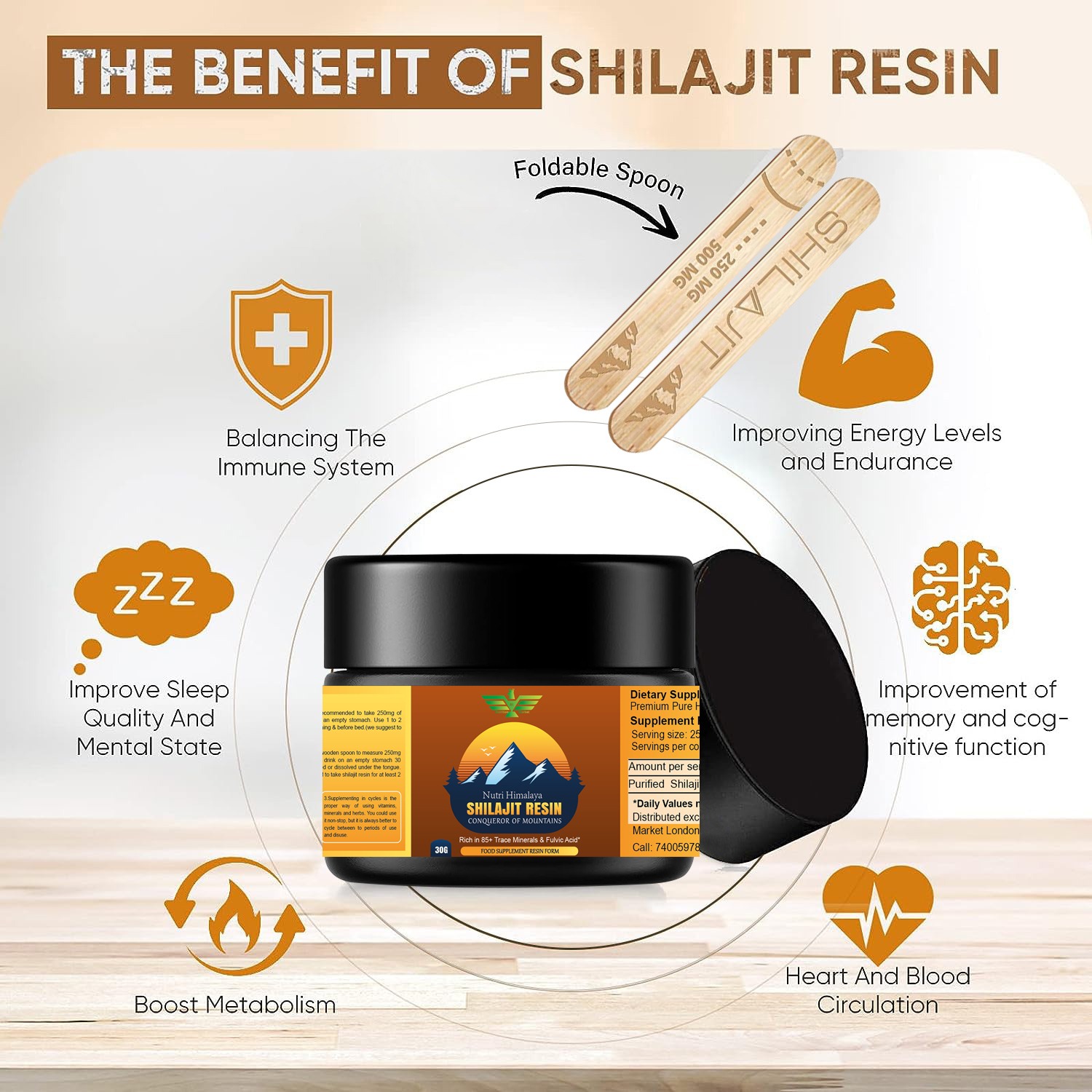 Nutri Himalaya Shilajit Resin is a traditional Ayurvedic supplement primarily composed of Shilajit resin, a mineral-rich substance found in the Himalayas. Shilajit is known for its adaptogenic, rejuvenating, and therapeutic properties due to its high fulvic and humic acid content, along with essential minerals.